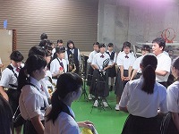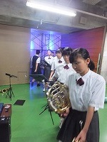 開会行事の演奏を終え控え室に戻ってきた吹奏楽部の生徒の表情には、練習を重ね一つのことをやり遂げた自信が感じられました。