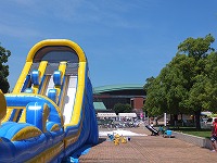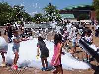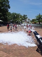 会場の外に出ると、空はますます青く気温も更に上昇していました。用意された水遊びができる機材の周りには小学生たちが集まって楽しそうに歓声を上げていました。