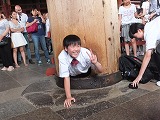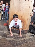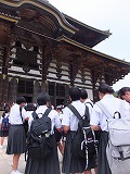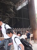 大仏様があまりに大きいのであまり感じませんが、周りの四天王像などもそれぞれ大きいのです。自分の、そして一人ひとりの人間の存在の小ささに気づかされた空間でした。たくさんの外国からの観光客や中・高の修学旅行生で混雑していましたが、例の柱の穴くぐりに挑戦してくれた深中生もいたので、その勇気と好奇心にあふれた3人に敬意をこめてパチリ。周りで見ていたたくさんの方々から大きな拍手をいただきました絵文字:四人