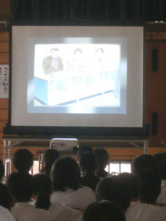 県税事務所の方に来校いただき、「税金はなぜ必要なのか」というテーマでお話しをいただきました。途中、”アナザー ワールド”というビデオを観ました。税金のない世界はどうなるのかがよくわかるビデオで、税金の大切さを実感できました。1,2年生同様、3年生も「本当によく話を聞いてくれてすばらしい」と講師の方から褒めていただきました。