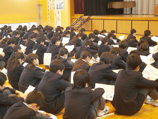 ◯人権講話 校長先生から配られた資料を見ながら