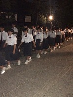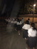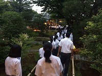 座禅の順番が来て禅居庵に入っていく姿も、座禅を終え夜の帳の下りた中に出てきたときも、実に堂々としていて立派でした。教えられできるようになっていることに自信と誇りをもってよい、そんな3年生、そんな最上級生になってきたと実感できた修学旅行2日目でした。