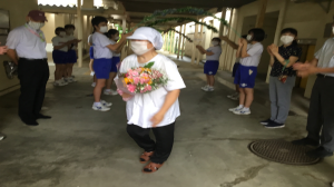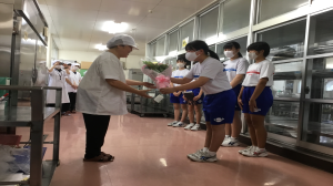 明日の1学期給食最終日をもって、給食調理員の島田さんがご退職されることになりました。