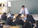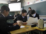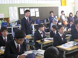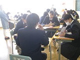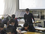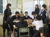 3年生は、2時間とも総合的な学習の時間を参観していただきました。各自・各グループで取り組んできた「戦争・平和・国際交流」についての課題の発表の場面です。単に調べたことを発表するのではなく、調べた事実をもとに自分で考え自分の言葉でまとめ、意見を交流することで考えを磨き合い、今日の発表に結びつけていました。過去と現在を未来につなぐ責任者としての自覚がうかがえる姿を見せてくれていました。