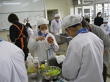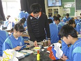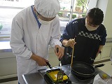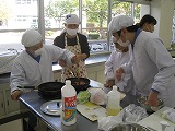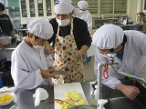 6・7・8組は自立活動としてお弁当づくりに取り組みました。みんなで決めた献立について、レシピを調べ、分担して材料を持ち寄り、協力して調理しました。上級生がグループリーダーとなり、仲間に教えたりレシピを確認したりしました。下の学年の生徒も積極的に調理に取り組んでいました。