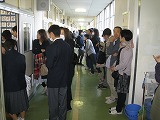 たくさんの保護者の方々に来ていただきました。家族の対応がちょっと難しくなる中学生ですが、やはり、わざわざ学校に来て自分の様子を見てもらえることは嬉しくないはずがありません。関心をもち気に懸けていることを行為として生徒たちに示し伝えていただいたことを、学校としても大変嬉しく思っています。また、下足入れの上や体育館のたたきの隅に綺麗に並べられた保護者の方々の靴を目にし、深中の生徒たちの靴がよく揃っていることは決して学校の取組だけでできるようになっているのではないことを再確認できました。これからも、ご家庭と学校、また地域と力を合わせ、素晴らしい人財を磨いていきたい、そう思える学校公開でした。
