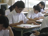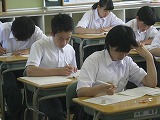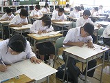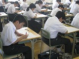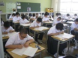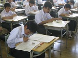 ピンと張り詰めた緊張感が教室に満ち、解答用紙に答えを書く鉛筆の音だけが聞こえてきます。一人ひとりの生徒が、今、自分にできる全力で各教科担任の先生から出題された問題に挑んでいます。
