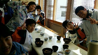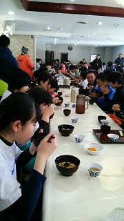 午前中のスキー実習の1時間ほどは、スキーやスノーボード、硬くて重いシューズ、そして雪・・・。そんないつもとは違うことに慣れたり、体をほぐしたりしているうちに、あっという間に過ぎてしまったようです。インストラクターさんに教えていただき、ケガなく元気にホテルに戻り昼食の会場に絵文字:食事 給食