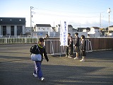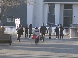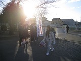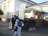 1月9日(水)、3学期に入って2日目の朝は、生活委員の明るく元気な「おはようございます!」の声から始まりました。美術部に作成してもらった幟旗(ノボリバタ)が冷たい北風にはためいている脇を登校してきた生徒も「おはようございます!」とあいさつを返してくれます。