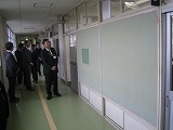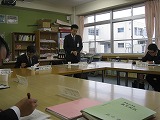 初めに図書室で、深谷中学校の取組について説明をし、その後に校内の様子や生徒が授業に取り組んでいる姿を御覧になりました。