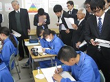 12月11日(火)、北部地区の数学の先生方や大学生たちがたくさん深谷中に集まり、北部地区数学教育研究会の授業研究会が開かれました。大学の先生や校長先生方、また退職された先生方もお見えになり、30名を超える方々が深中の1年生の授業を参観されました。