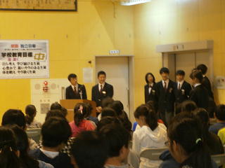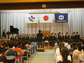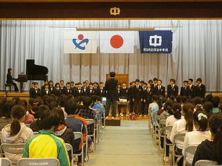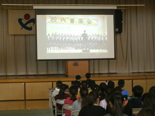 ◯アトラクションは2年生選抜隊による、「校歌」「COSMOS」の合唱 迫力ある歌声に圧倒される6年生。