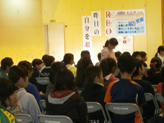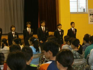 始めは緊張気味だった6年生のみなさんでしたが、質疑の時間には積極的に手を挙げて、中学校生活についての質問をすることができました。体育館での様子を紹介します。
