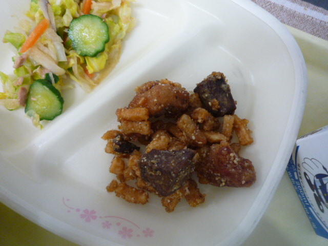 27日の給食【豚肉と高野豆腐のごまだれ】