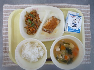きんぴら 豆腐のみそ汁 牛乳