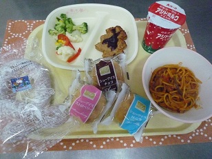 目先を変えてリース型のパンを出したら、給食当番の生徒たちがパン箱の中を