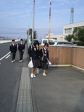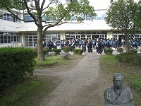 10月17日(水)、秋のさわやかな朝、部活動がない日なのでみんな少しゆったりと登校しているようです。