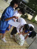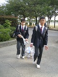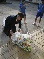 しかし手にぶら提げている袋からはガラガラという音が聞こえます。そう、今朝はアルミ缶回収があるのです。東方向から南門に入ってくる人も、西方向から入ってくる人も、自転車通学の人も、ガラガラ音を立てて登校です。今朝も昇降口前で福祉委員さんたちが持ってきてくれた人とアルミ缶の数をチェックして回収してくれています。