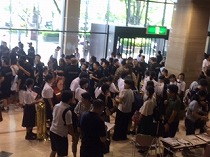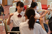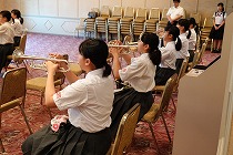 そして午後、3年生を中心に構成する中学校A部が始まりました。深中は最終演奏団体です。リハーサル室では、与えられた時間を最大限有効に使い、音と気持ちの最後の調整に真剣に取り組んでいました。磨かれた音が、コンクールの演奏直前の緊張感と顧問の中澤先生の的確な指導で、更に磨かれていくことが私にもわかりました。