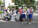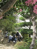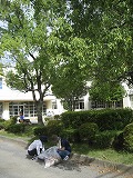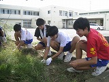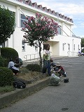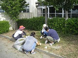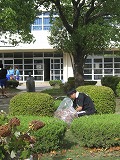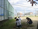 台風一過の青空が広がり、厳しい残暑の朝。PTAの環境整備委員会のみなさんを中心に、保護者の皆様、学校応援団の方々、そして生徒、教職員が力を合わせて、PTA環境整備に取り組みました。