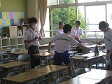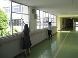 生徒たちが教室に入ってくる前に少しでも涼しくなるよう、先生たちで手分けをして窓を開けていき、教室の扇風機を回しておきました。扇風機が教室の空気を動かしてくれると少し涼しくなったような気がしました。