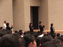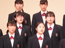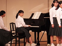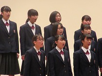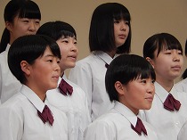 音程のとりにくい難曲ですが、よく歌い込みしっかりと音も言葉もホールの隅々に、そして聴いている人の心に届いてきました。大ホールが、ピアノによる伴奏と3年生の声だけで満たされた空間と時間が創られていました。